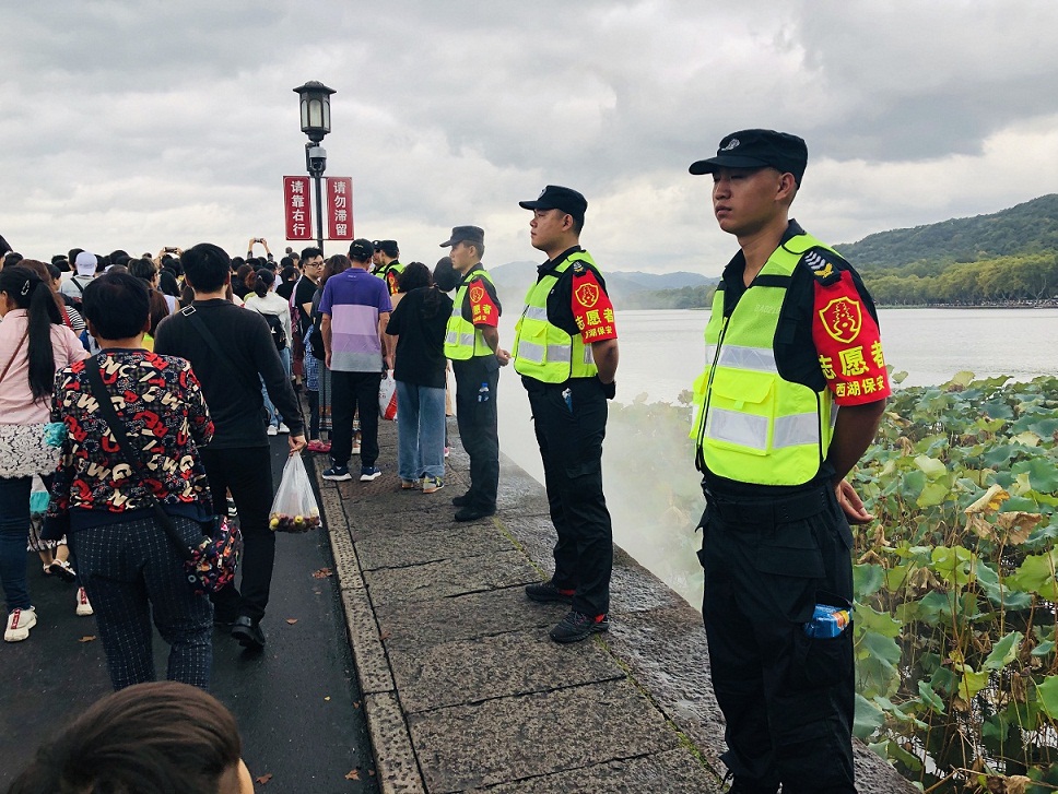 為積極配合“保安勇?lián)?dāng) 忠誠(chéng)保大慶”主題活動(dòng)的開(kāi)展,杭州西湖保安服務(wù)公司每天派出11名安保隊(duì)員作為志愿突擊隊(duì)