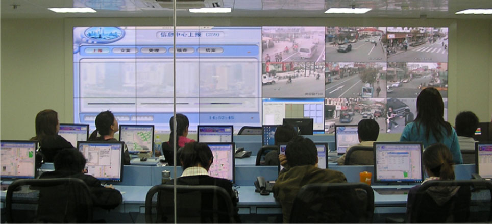 杭州市數(shù)字城管項(xiàng)目一期工程。圖為控制大廳